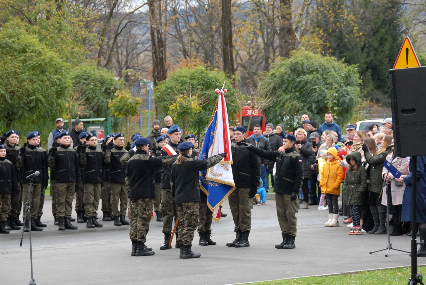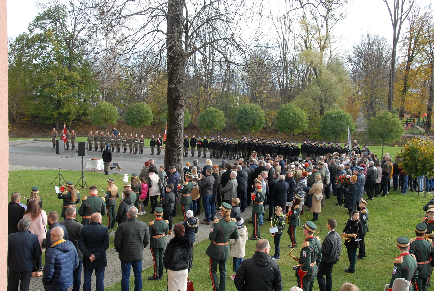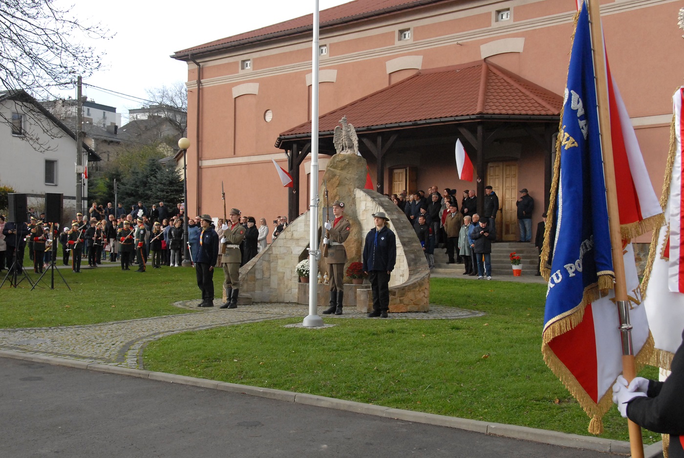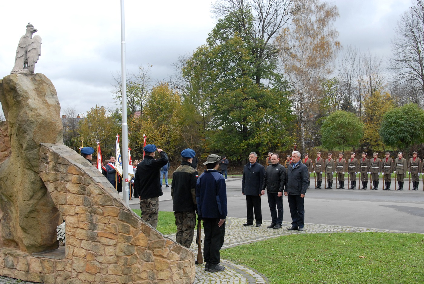 Po tym akcie nastąpiło wręczenie stopni sokolich dla młodych adeptów, którzy pod czujnym okiem p. Kazimierza Cetnarskiego kontynuują tę dawną, piękna tradycję. Liczne delegacje zaproszonych gości złożyły następnie wieńce pod pomnikiem upamiętniającym setną rocznicę odzyskania niepodległości. Ten szlachetny akt, często trywializowany oznacza w swej symbolice poczucie wdzięczności i szacunku, dla tych pokoleń, które swą krew przelewały za sprawę Najjaśniejszej Rzeczypospolitej.
