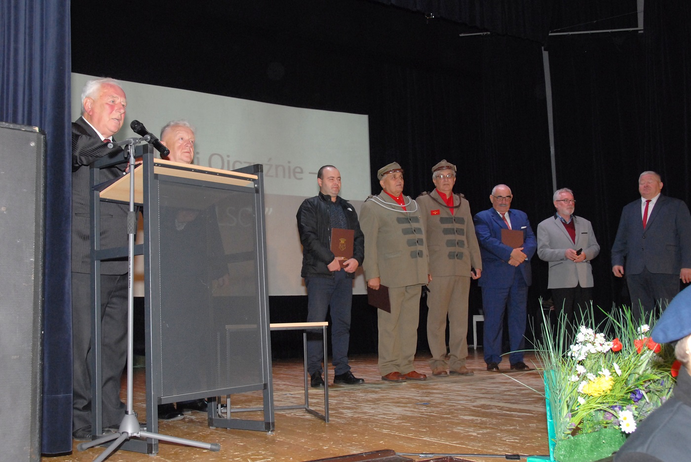 Kolejna część uroczystości odbyła się w budynku kina "Sokół". Tam, najpierw głos zabrał pan Wojciech Farbaniec – burmistrz Rymanowa, który podkreślał wagę tworzenia wspólnoty w procesie budowania nowoczesnego patriotyzmu. Po przemówieniu, odbyła się podniosła uroczystość, w trakcie której uhonorowani medalem "Zasłużony dla Gminy Rymanów" zostały trzy organizacje. Znamiennym jest fakt, że uhonorowani w swej działalności, skupiają się na budowaniu pięknej teraźniejszość, opierając się na historycznych wartościach. Tytuł otrzymali: