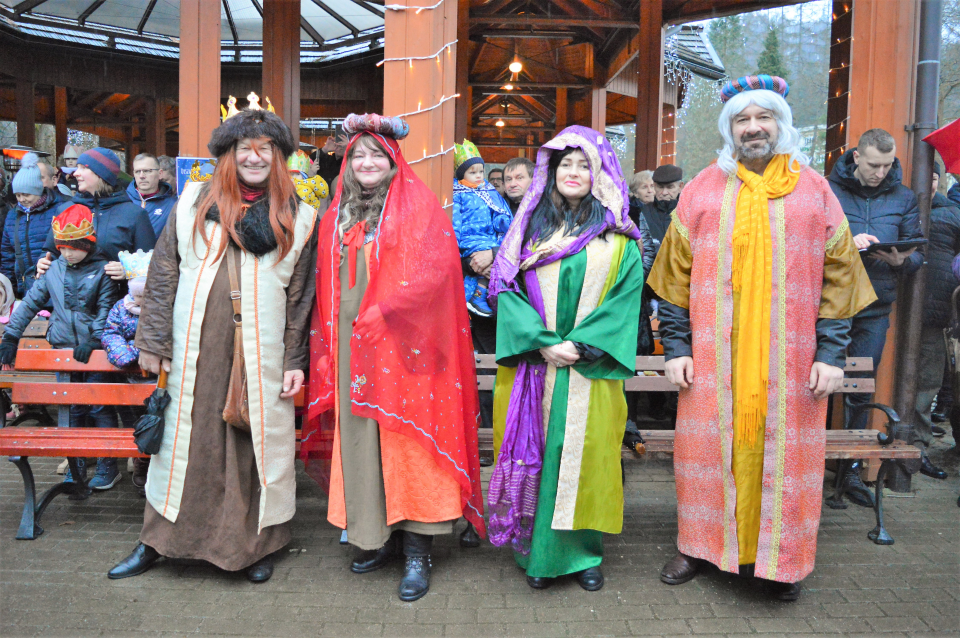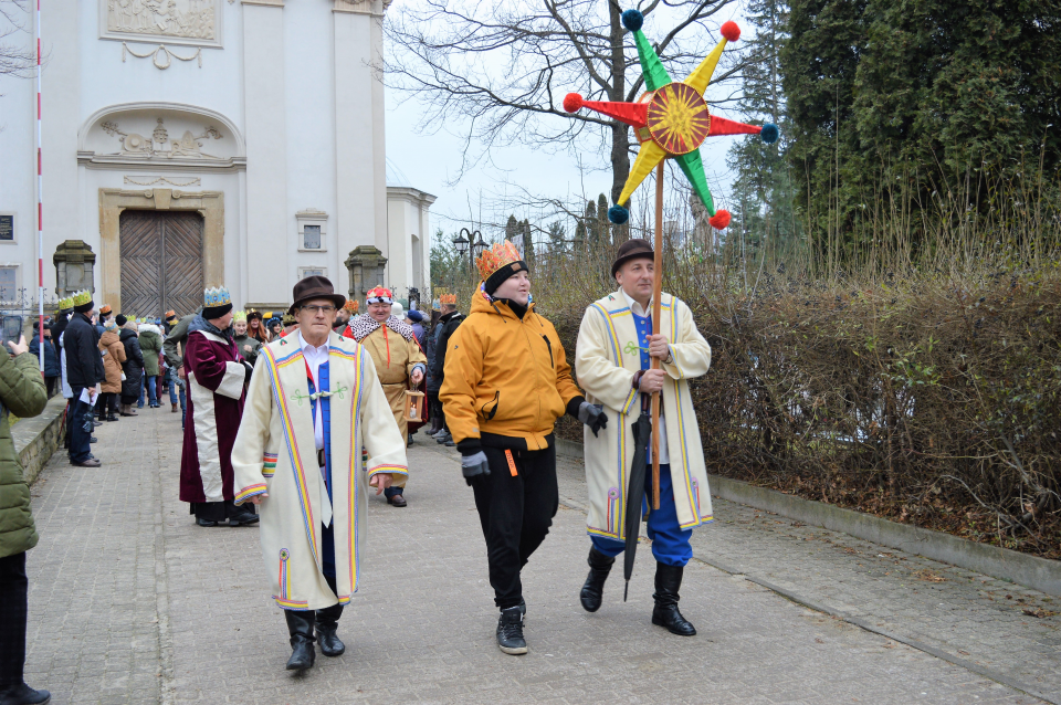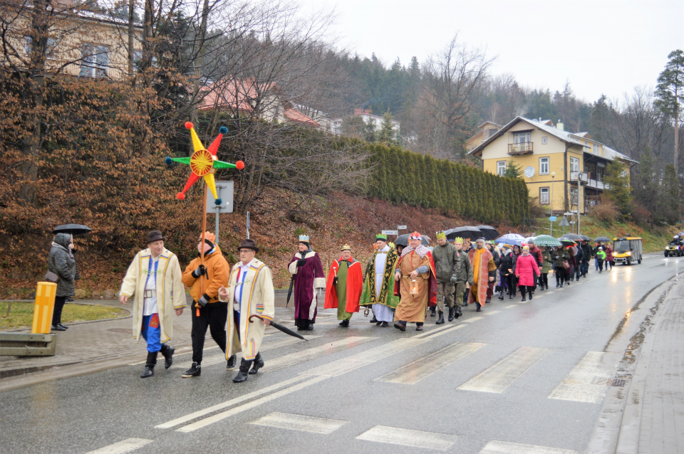 Po zakończonej Eucharystii uformował się Orszak Trzech Króli. W rolę Monarchów wcielili się: burmistrz gminy Rymanów - Wojciech Farbaniec, przewodniczący Rady Miasta - Andrzej Pitrus i ks. Grzegorz Polasz. Barwny korowód prowadzony przez gwiazdę, udał się w mglistej, deszczowej aurze w 4 km trasę z Rymanowa do Rymanowa Zdroju. Podczas orszaku śpiewano kolędy, które poprowadził Pan Bogdan Porembski z Rymanowa Zdroju, do których to przygrywała Kapla Ludowa Rymanowianie. W korowodzie wzięli udział min. starosta krośnieński - Jan Pelczar, zastępca burmistrza gminy Rymanów - Gzrzegorz Wolezański wraz z małżonkami, Radni gminy, młodzież z Zespołu Szkół w Rymanowie z klas mundurowych oraz liczna grupa mieszkańców gminy Rymanów. Główną atrakcją orszaku byli jeźdźcy na koniach oraz bryczki konne. Orszak przybył pod scenę amfiteatru nad Czarny Potok w Rymanowie Zdroju. Uczestników przywitał pan Bogdan. Następnie ks. Grzegorz Polasz odczytał fragment z Ewangelii św. Mateusza a krótkie Słowo Boże do uczestników wygłosił proboszcz parafii Rymanów Zdrój - ks. Marek Zajdel.