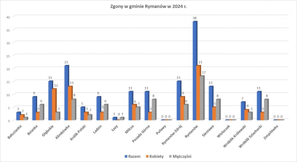 W ubiegłym roku zmarło 169 osób: 87 kobiet i 82 mężczyzn.